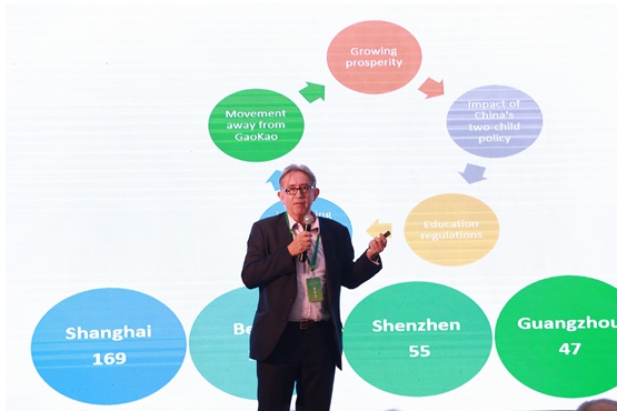 大卫·曼斯菲尔德(David Mansfield)在演讲中指出,近年来随着中国教育政策、人口政策、教育理念等变化,加之中产阶级群体迅速增长,中国国际教育进入繁荣发展期。他以包玉刚实验学校为案例,指出雇佣一流的教师、提供一流的教学支持、创造一流的学习环境、保证一流的教学资源投入、培养一流的学生、塑造一流的国际影响力是一所出色的国际学校的成功路径。