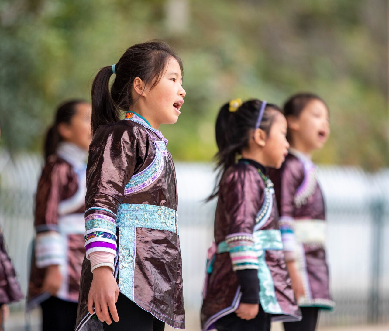 12月12日,贵州省从江县刚边壮族乡中心小学音乐社团学生在唱壮歌。通讯员 罗京来 摄