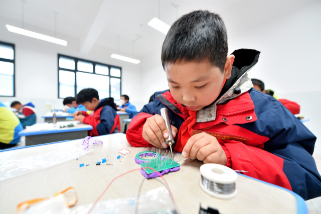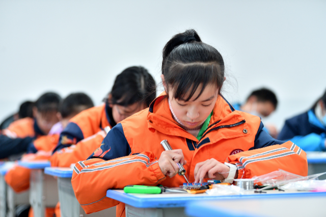 学生们在参加电子制作竞赛 杨韬 黄玲 摄