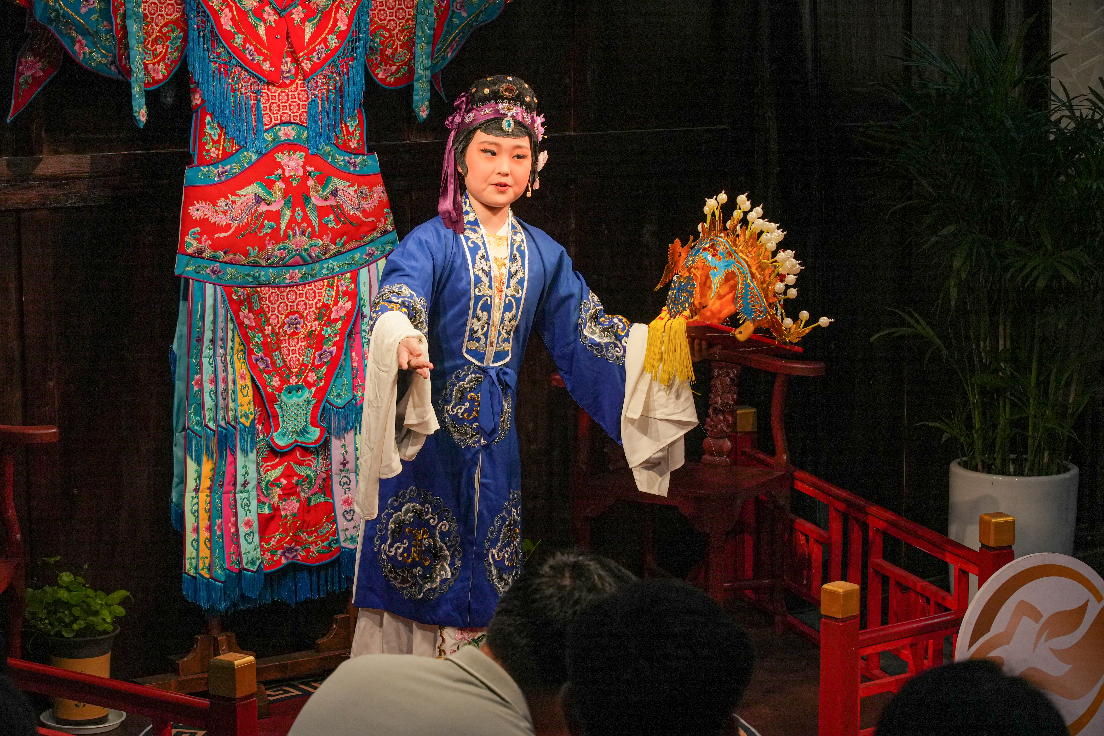 7月23日,在浙江省湖州市德清县乾元镇马花堂,孩子们正在表演传统戏曲,展示戏曲学习成果。近年来,德清县乾元镇积极推进少儿戏曲传承工作,通过选拔一批热爱戏曲的小朋友重点培养,并持续开展戏曲进校园、戏曲下乡、文艺赋美等系列活动,让孩子们在表演中,深刻感受戏曲文化的韵味与独特魅力,增强文化素养,弘扬与传承中华优秀传统文化。