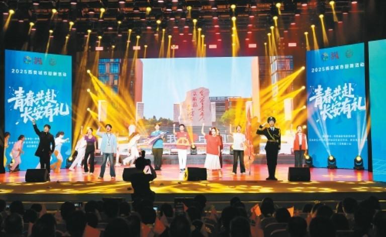 活动中,全国道德模范丁水彬、西安市新文艺青年协会代表冯佳晨、西安电子科技大学学生周梦翔等共同演绎节目《西安礼遇》。不同领域的“西安代言人”齐聚舞台,带领观众穿越时空,领略大唐盛世风采。汉服爱好者身着锦绣冠裳,吟诵诗句,展现了西安青年在传承中华文明、深化文旅融合方面的主动担当。