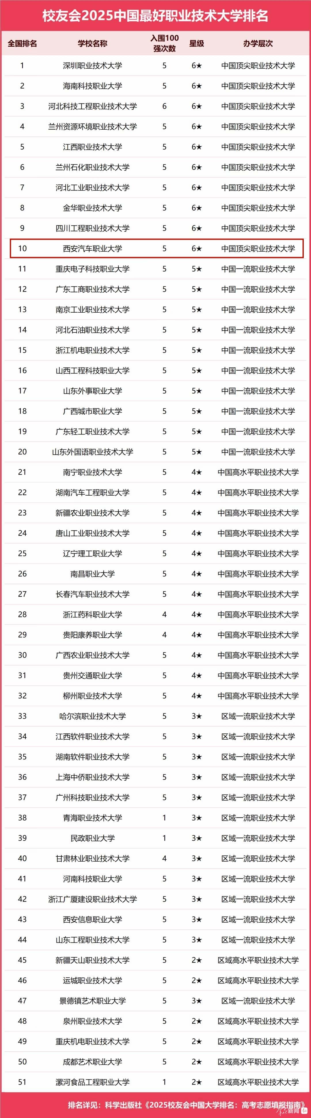 10月28日,记者从西安汽车职业大学获悉:“校友会2025中国最好职业技术大学排名”近日发布。该校进入全国十强名单,成为迄今为止陕西省唯一一所入围该榜单前列的职业技术大学。
