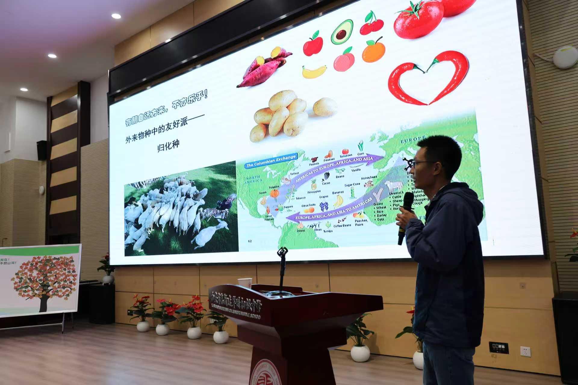 学校还邀请陕西师范大学刘刚教授开展《外来生物入侵与生态安全》专题讲座。刘教授以生动案例及珍贵影像,揭示了生物多样性保护的重要性。讲座后,全体学生庄严宣誓,并在承诺板上签名,立下守护秦岭的坚定誓言。