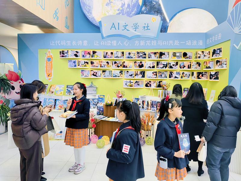 当日一走进校园,AI赋能校园的活力扑面而来,“AI创客集市”热闹非凡,校园小创客们变身“小老板”,在摊位上热情售卖亲手制作的AI创意产品,从手工文创、环保小发明到3D打印饰品、编程玩具等琳琅满目,来宾们持“龙娃方新币”支持孩子们的创业梦想。AI智能体研发展示区,“小新”系列教学智能体同步开放体验,大家近距离感受了科技赋能教育的鲜活魅力。“AI+课程”特色成果展、“AI文学社”等让大家切实触摸到教育创新的温度与力量。学校操场上,一场别开生面的特色课间操活动展示也充分彰显了方新小学教育集团“八好少年”的蓬勃风采,体现了学校在落实“立德树人 五育并举”教育理念探索中的新实践。