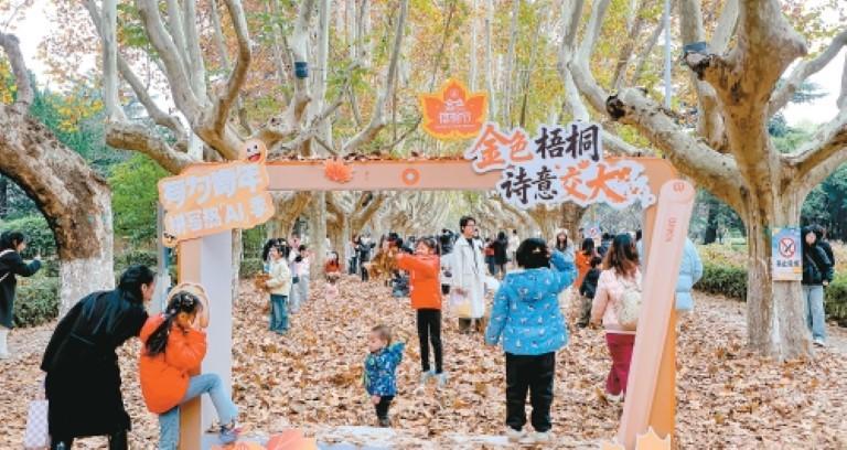步入校园,记者被200多米长的彭康路深深吸引——金黄的梧桐叶层层叠叠铺展开来,化作浪漫璀璨的金色长廊,成为师生们争相拍照留念的打卡地,校园内处处洋溢着热闹温馨的氛围。