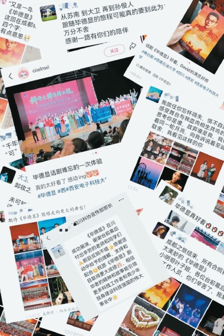 原创话剧《毕德显》赴四川演出后,部分参演师生及观众感受。(西电供图)