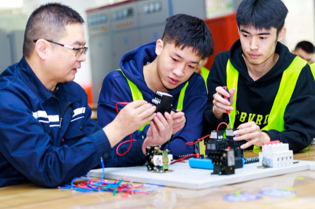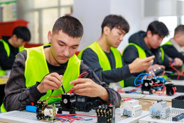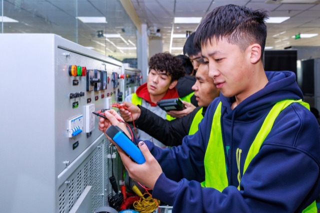 大学生们正在进行电工作业实操。通讯员 孙振嵩 摄