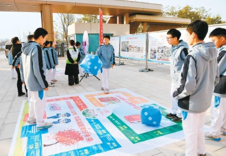 图为同学们在趣味游戏和欢乐互动中掌握应对校园欺凌、网络诈骗等相关法律知识。
