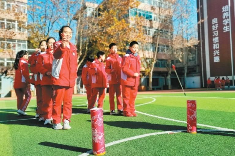 自2021年起,学校通过馆校合作“双师课堂”、5G直播跨学科教学、课间趣味体育活动等形式,系统化将投壶运动引入校园。“箭矢投落间,提升了孩子们的身体感知力和心理稳定性。我们还在竞技中引导他们体会‘君子之争’的礼仪内涵,在游戏间涵养谦和礼让的优良品格。”学校相关负责人说,如今,投壶已成为学校将历史教育、体育精神与文化传承有机结合的特色育人载体。
