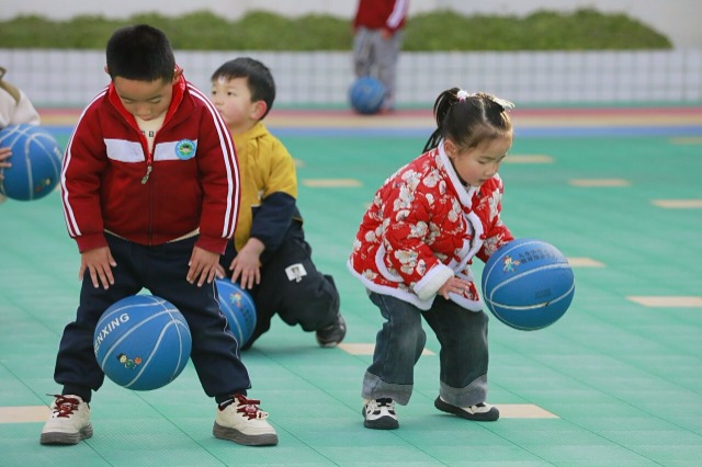 孩子们化身“运动小达人”,穿梭在五彩的轮胎与皮球之间。