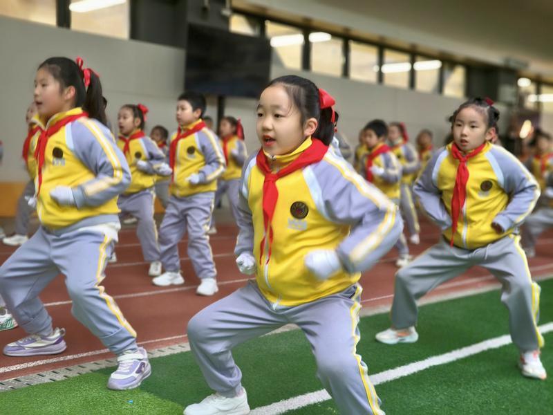 走近星光小舞台,未央路小学“小百灵”合唱团以《红红的太阳》《生长吧》两首歌曲传递朝气与希望。操场上,武术操《少年有志 强国有我》刚劲有力,展现了未央学子昂扬向上的精神风貌。教学楼内,校本课程葫芦丝社团奏响《龙的传人》《男儿当自强》,旋律激昂,彰显文化自信。