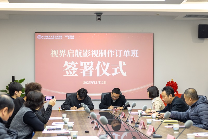 “视界启航影视制作订单班”合作协议的签署,为西安科技大学高新学院学子开辟了前景广阔的实践就业路径。学院将与西安视界启航教育科技有限公司紧密协作,充分发挥各自优势,学校以丰富教育资源与严谨教学体系筑牢学生理论根基、夯实基础技能;企业凭行业经验、前沿设备与项目资源,为学生打造真实实践场景与实战契机。