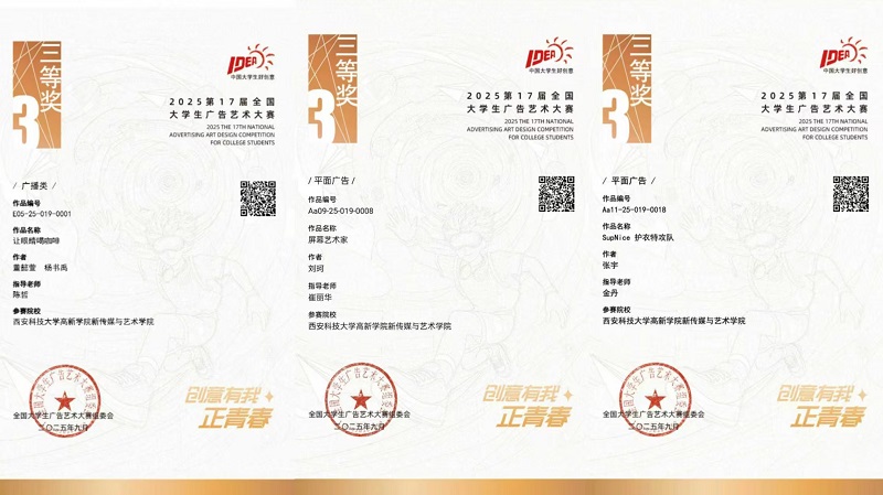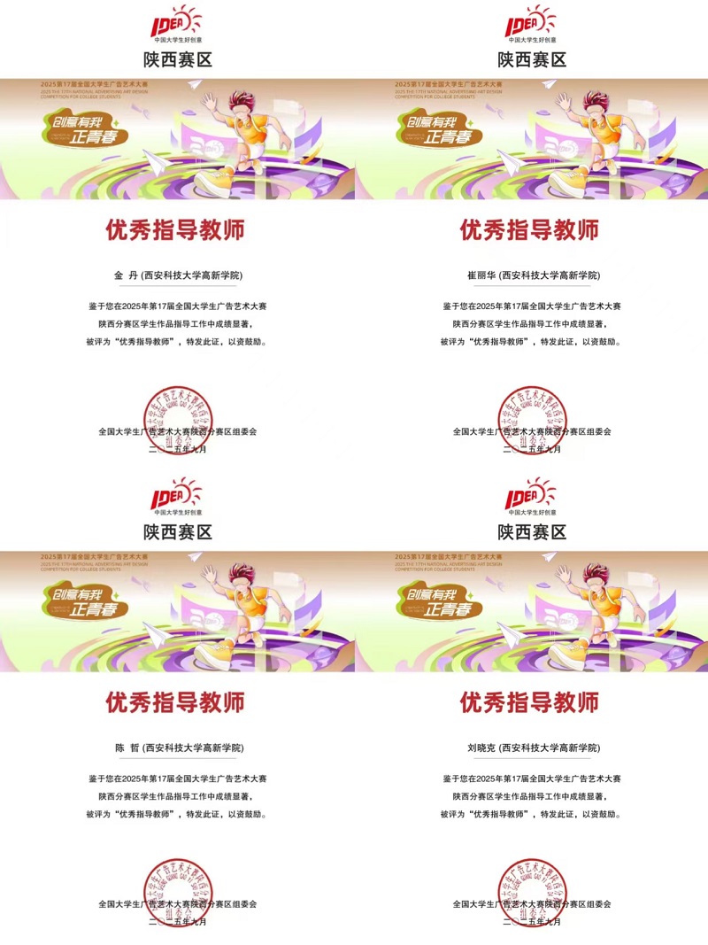 西安科技大学高新学院已连续三年荣获大广赛“优秀院校”称号,这一成绩的取得,是学院长期深耕实践教学、深化产教融合的有力见证。近三年来,学院在大广赛中屡创佳绩,累计有超10名教师凭借出色的指导成果荣获国家级奖项,奖项涵盖全国三等奖、优秀奖等多个级别;获奖作品题材丰富、创意新颖,充分展现了学院学子卓越的创新思维与扎实的实践能力。