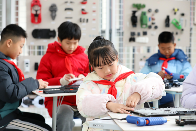 12月23日,江苏省海安市南屏小学校园科技节“拆拆乐”活动火热开展。学生们在老师指导下将废旧无人机、笔记本电脑等物品拆解成零件后粘贴展示,观察内部构造,领悟科技原理,于探索中激发科技兴趣。
