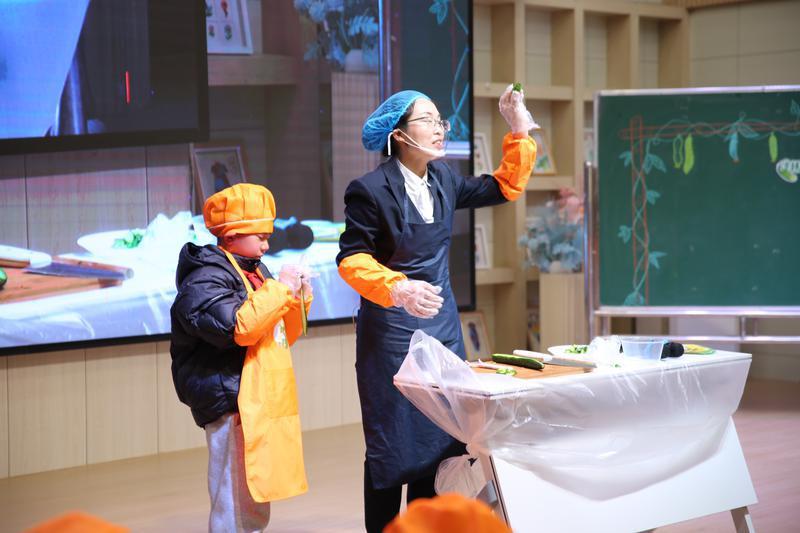 胡春红老师的《凉拌黄瓜花样多》,让课堂充满生活气息。“小厨师上岗仪式”后,孩子们在洗、切、拌、摆的实践中,将普通黄瓜创意打造成“双鱼报喜”“翻开书本”等创意摆盘,既掌握了“一勺醋半勺酱”的生活智慧,又在合作创造中体会到“劳动果实分外香”的朴素道理。