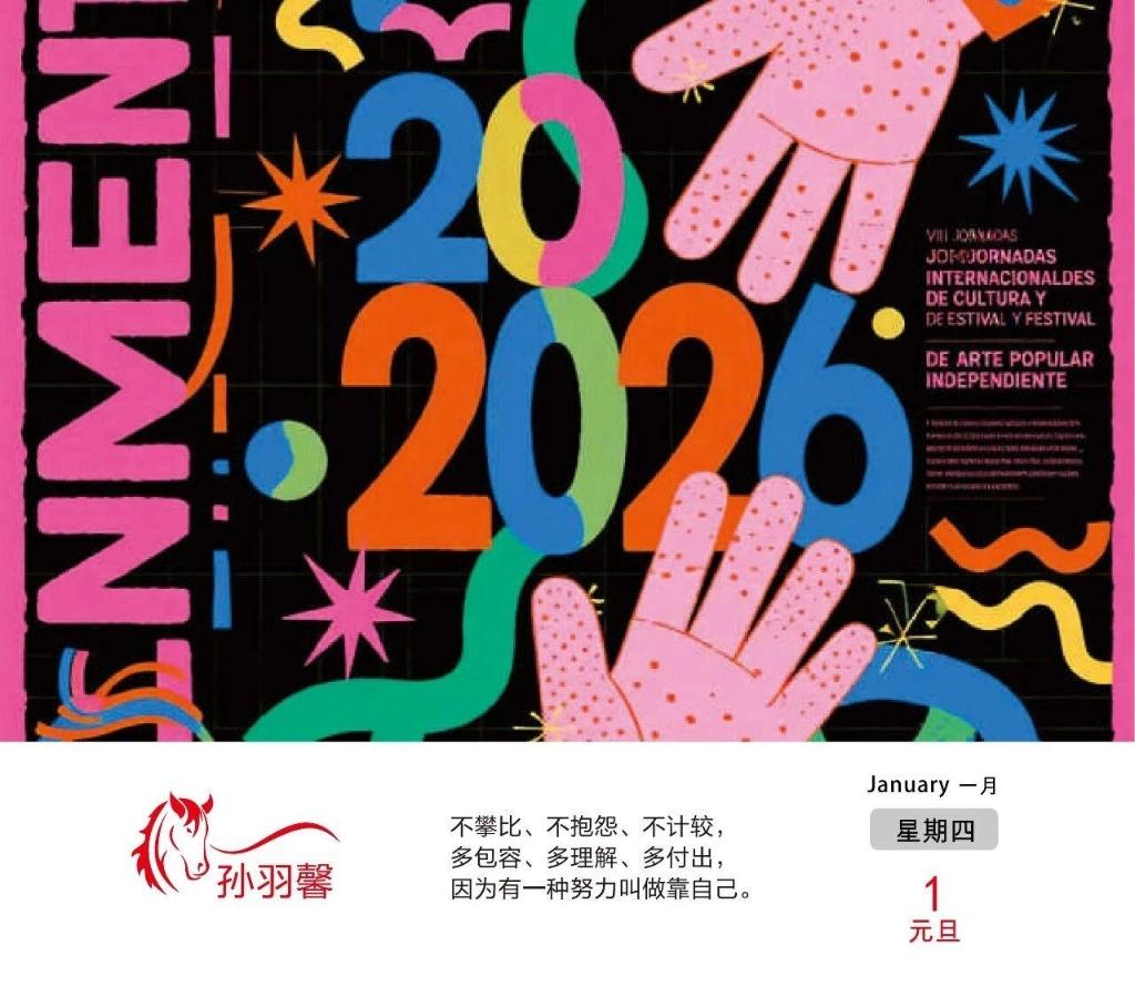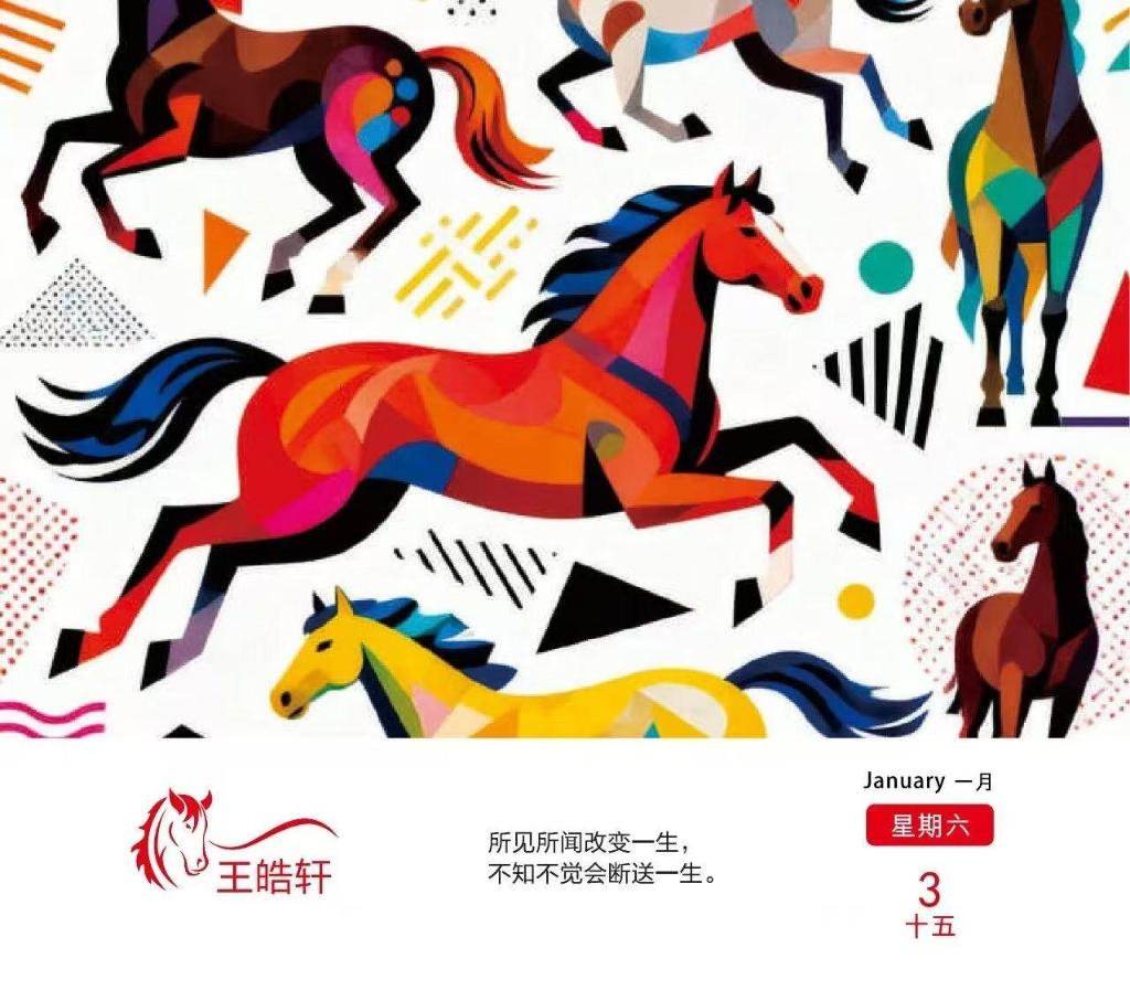 这本日历最动人的地方,在于“共创”二字。没有专业设计师的“标准答案”,有的是学生笔尖下的奇思妙想——或许是课堂上一闪而过的灵感,或许是和同学并肩奋斗的温暖记忆,都被定格在日历的方寸之间。老师则化身“艺术顾问”,用专业视角打磨细节,让校园里的日常光影,变成了可触摸、可珍藏的艺术作品。马年元素的巧妙融入更让日历锦上添花:跃动的骏马插画、“马到功成”的美好寓意,既呼应了2026马年主题,又传递着“以梦为马,不负韶华”的期许。