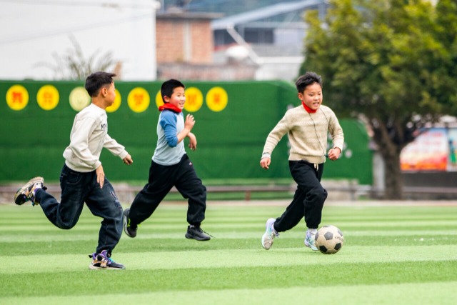 2026年1月12日,贵州省黔东南苗族侗族自治州从江县刚边壮族乡中心小学的学生在进行足球对抗赛训练。从江县教育部门积极探索校园足球教学模式,通过开展校园足球社团、举办校园足球联赛等方式,让学生们在足球运动中愉悦身心、锻炼体魄、磨砺意志、增强体质,促进健康成长。