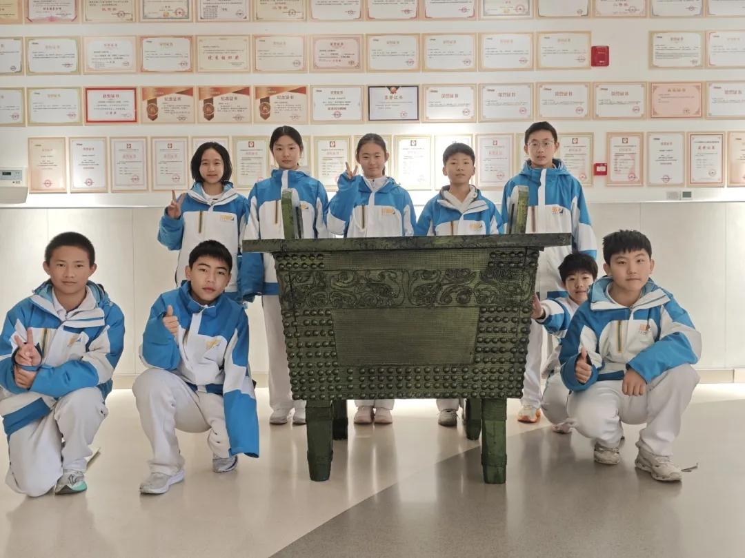 刚踏入科技节历史展现场,一座气势恢宏的复刻文物引人注目, 这就是由学生团队用泡沫精心还原的商代青铜重器 “杜岭方鼎”。