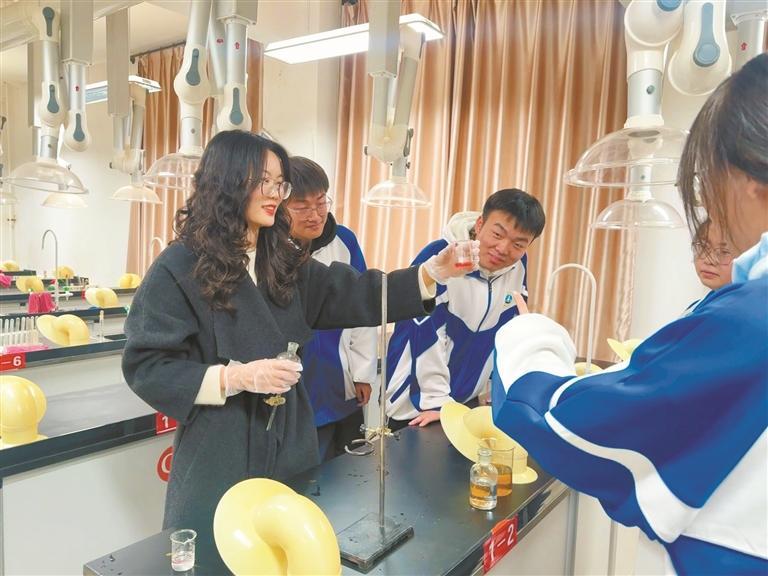 1月15日,定边中学化学老师朱琳在给学生上实验课。 本报记者 刘正龙摄