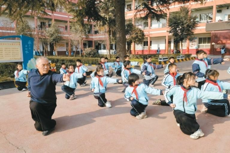 1月22日下午,沣东新城落水小学的操场上,红拳训练正在火热进行。孩子们在教练范风鹏的指导下,一招一式刚劲有力,拳法、棍法、剑法耍得有模有样。范风鹏穿梭在队伍中,逐个纠正孩子们的动作。