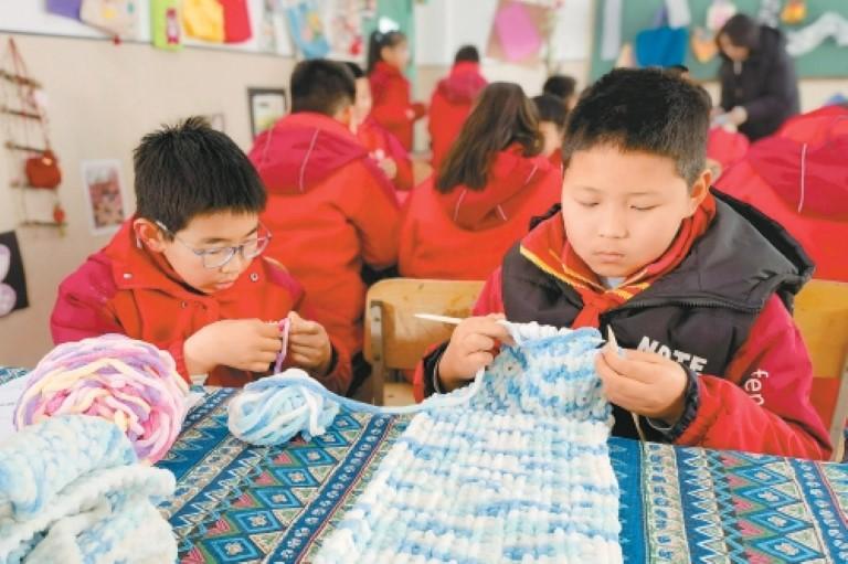 布艺教室里的场景则格外暖心。三年级3班的孩子在缝制沙包;五年级2班的学生在织围巾,樊锦轩虽是男生,手艺却“老道”,织得又快又好。“我要把织好的围巾送给妈妈,让她冬天暖和一点。”樊锦轩笑着说道。