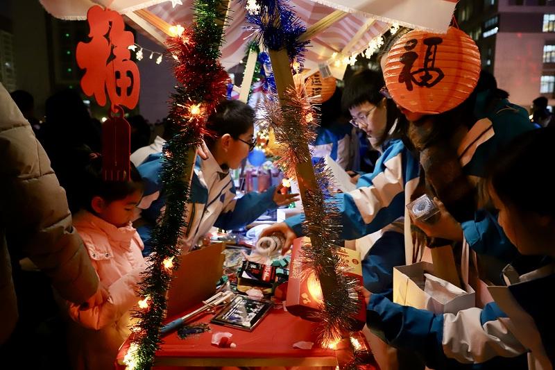 记者了解到,此次活动以“骐骥千里越山海 久久为功十二辰”为主题,将知识性、趣味性与文化内涵深度融合。学校精心设计了15个主题板块、百余项体验内容,并且推出差异化体系——小学部“稚驹新苗”、初中部“青骢少年”、高中部“骐骥英骏”、教师与家长“伯乐智库”,让不同的参与者都能找到专属乐趣。当晚,上述15个主题板块区域各具特色。从“骏集云津”年货市集到“伯乐艺台”精彩演出,从“一马当先”学科竞答到“灯宵骅骝”生动呈现……每个区域都洋溢着青春活力。