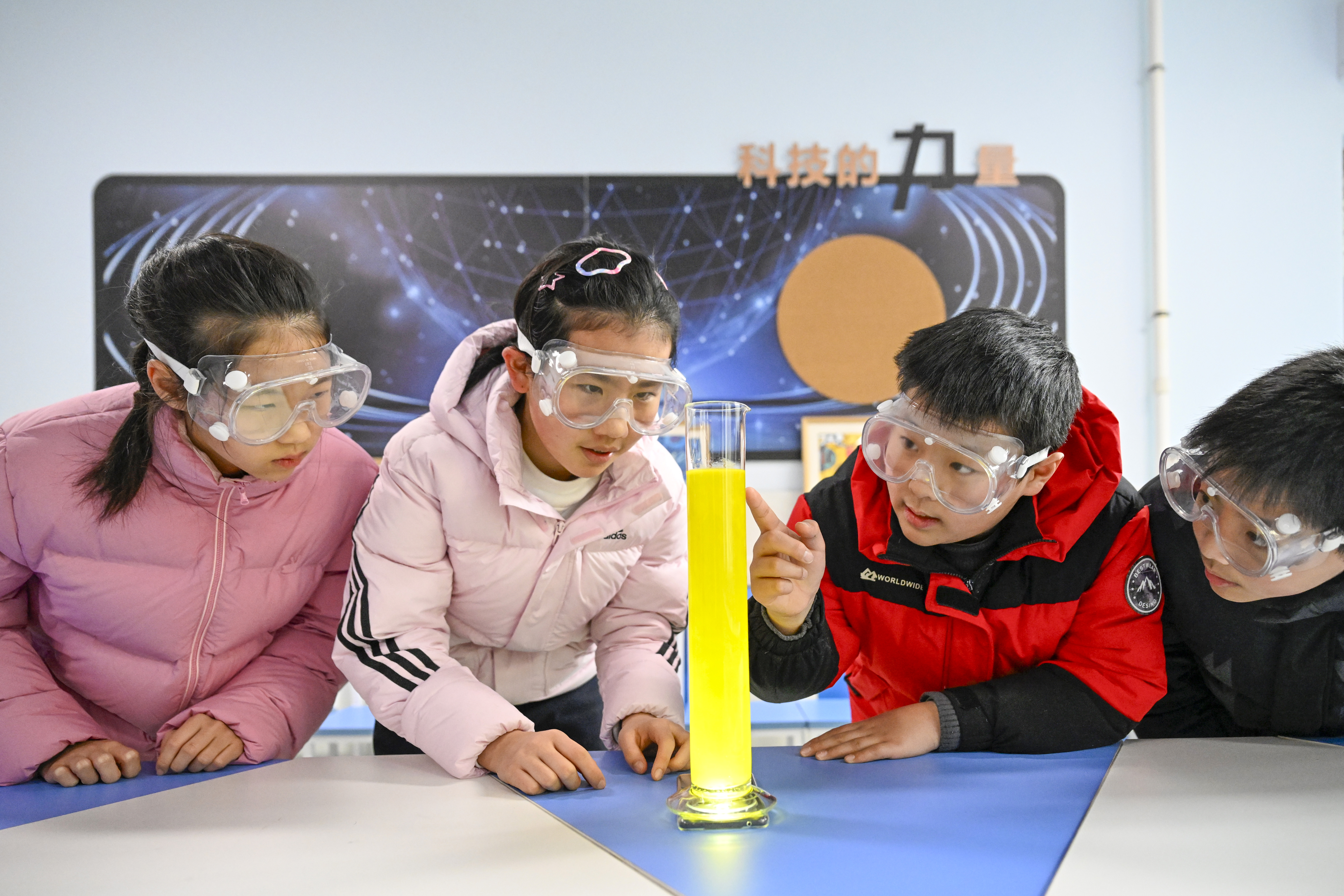 2月3日,在安徽省合肥市庐阳区海棠街道党群服务中心,小朋友们正在多彩兴趣班学习科技技能。赵明 摄