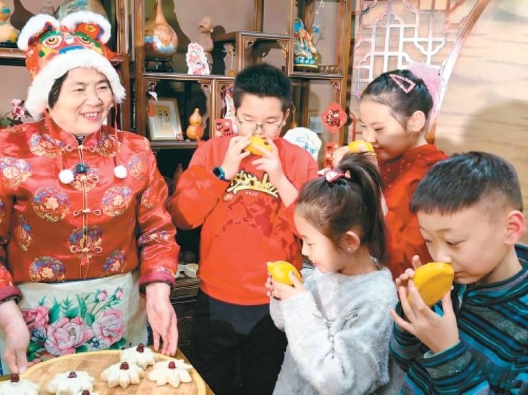 在碑林区文化馆,雁塔路小学的孩子们感受非遗花馍的魅力。
