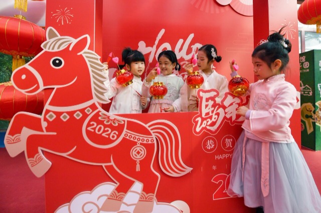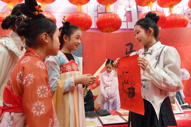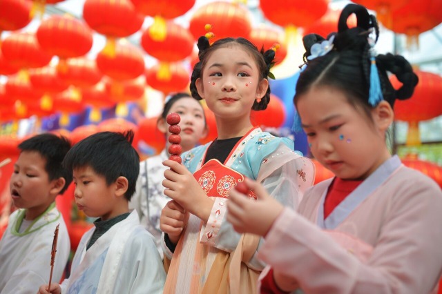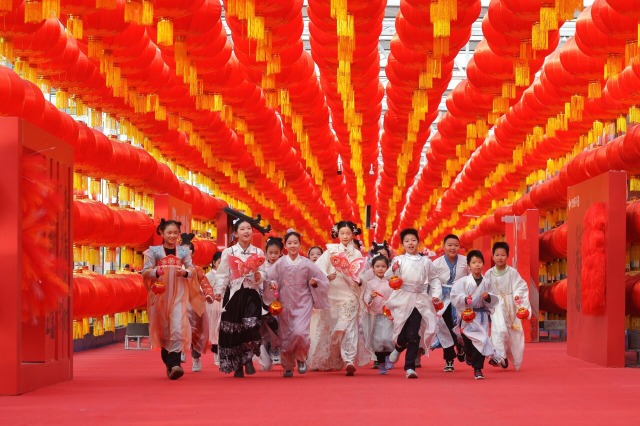 学生们手持灯笼游园,感受年味气息。王海滨 摄