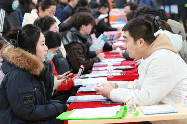 2月23日,山东省高密市2026年新春人才招聘会举行,吸引春节返乡人员、高校毕业生和城乡各类劳动者等群体寻找合适的工作岗位。