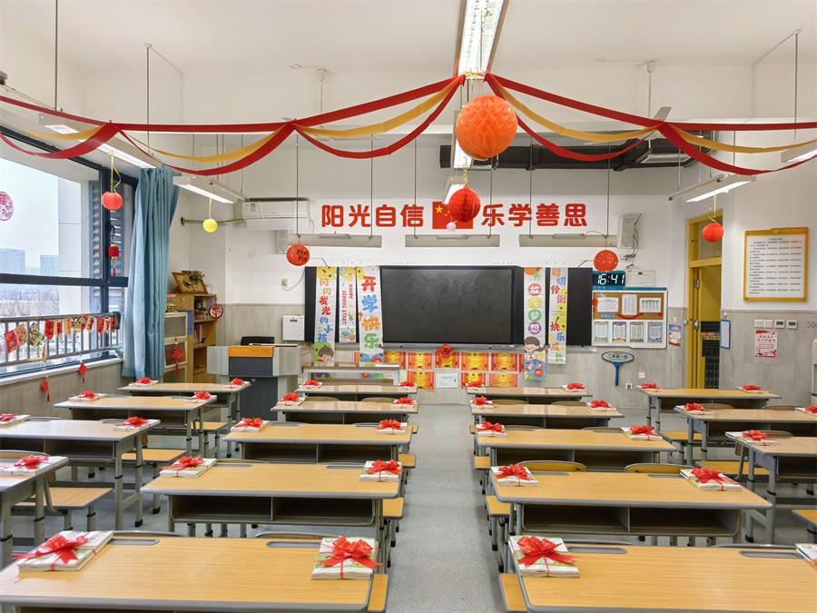 3月2日上午,记者走进西安高新区第十五小学,处处洋溢着迎接学子归来的温馨氛围。教学楼、操场、食堂等区域全面清洁消杀,教室窗明几净、桌椅整齐,绿植修剪一新,道路整洁通畅。教室里更是暖意融融、氛围温馨,每一处精心布置,都饱含着对学子的期待与祝福。