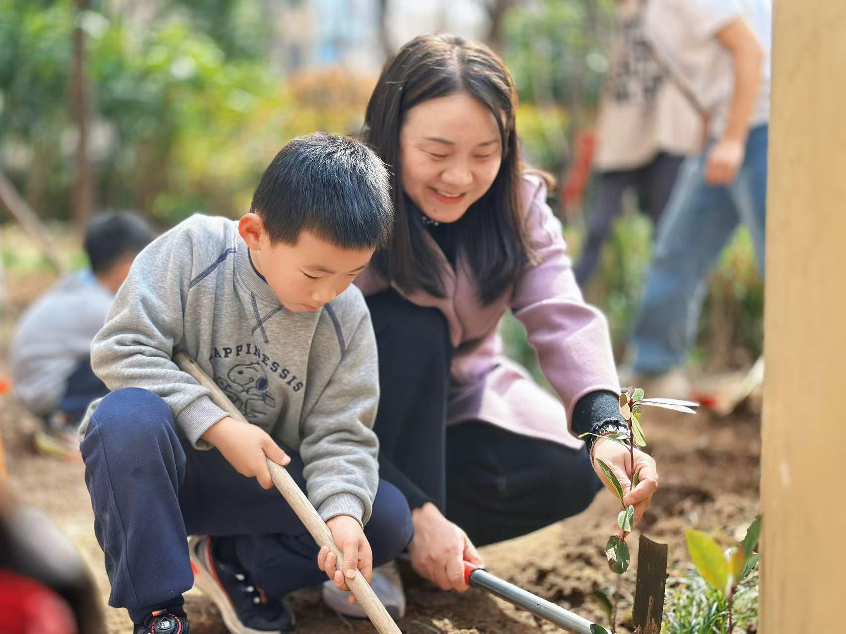 老师、幼儿和家长代表组成“绿色小分队”走进社区,植树护绿、美化环境。幼儿园倡议家长,利用周末陪伴孩子走进大自然,在亲子互动中践行绿色生活,用实际行动共建生态友好家园。