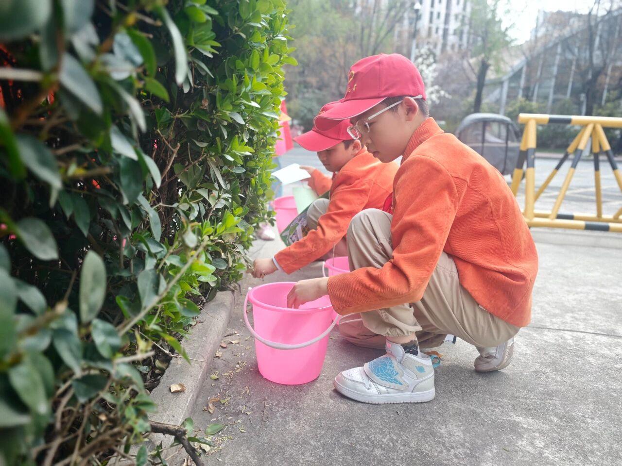 校园里,队员们为小树挂上爱心树牌,认真写下心愿与绿色寄语,细心为小树浇水、松土、施肥。各班主动认领一片绿地,让责任与小树一同扎根、向上、茁壮成长。走出校园,队员们进社区,开展爱绿护绿志愿服务。他们带着亲手制作的植树节卡片送给社区的叔叔阿姨,呼吁大家一起爱护花草树木,守护家门口的绿色家园。
