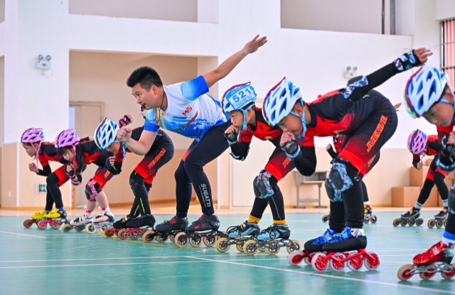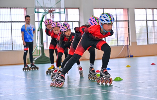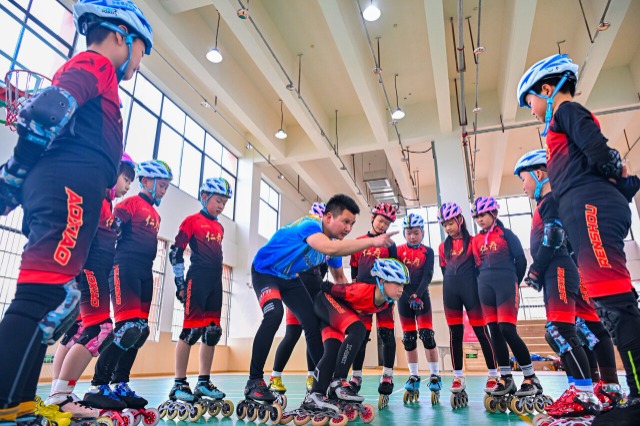 教练正在指导学生进行轮滑训练。通讯员 潘帅 摄