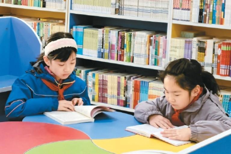 在碑林区雁塔路小学,早到的学生在阅览室看书。(记者 王燕 通讯员 王文静 摄)