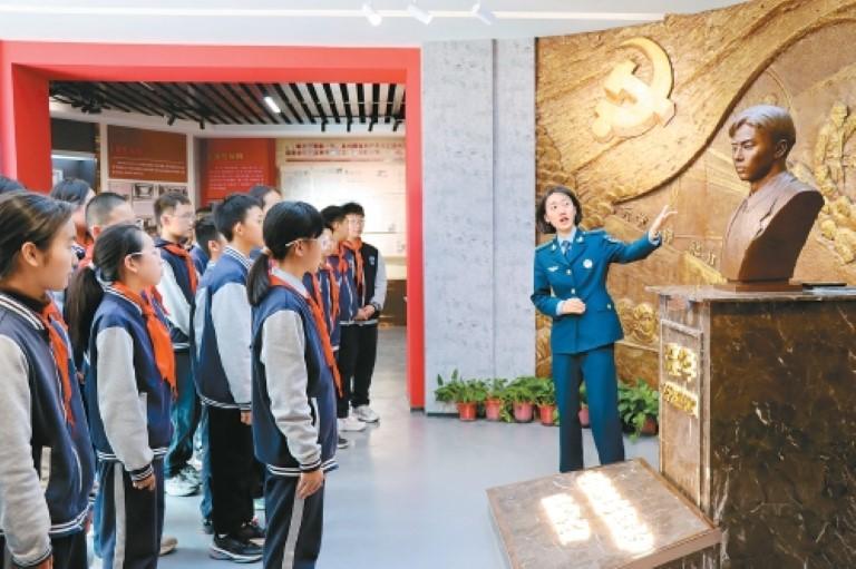 在张华荣誉室,励志小学的少先队员们认真聆听讲解。 (学校供图)