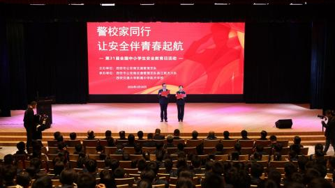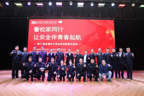 在第31个全国中小学安全教育日来临之际,为全面筑牢校园安全屏障,创新校园安全教育模式,充分发挥“警校家”三方协同育人合力,3月30日下午,西安航天菁英学校、西安交通大学附属中学航天高级中学在学校星空报告厅隆重举办“警校家同行——让安全伴青春起航”安全教育主题活动。此次活动是学校践行特色化办学理念、深耕校园安全建设的重要举措,更是全市中小学探索“警校家”联动安全教育新路径的标杆实践,为全市校园安全教育工作树立典范、提供借鉴。