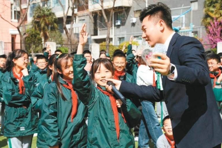 西安高新泾河小学读书月启动仪式上的“猜书名”互动环节。(学校供图)