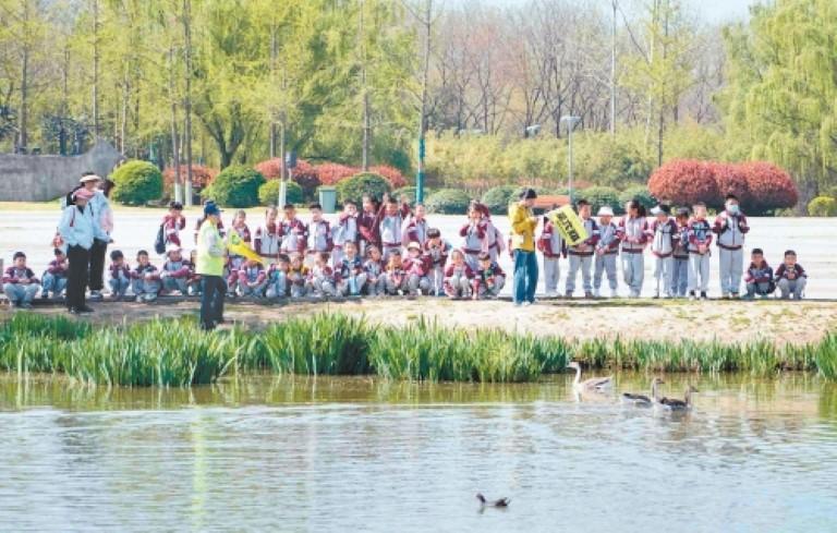 值得一提的是,依托西安浐灞国家湿地公园的生态资源,芦曲华年生态科学馆打造了户外研学场景,工作人员结合园区实景,向孩子们详细介绍湿地在抵御洪流、调节气候、净化水质等方面的重要作用,并且讲解鸟类保护知识,让大家在生动有趣的科普活动中领略湿地之美。