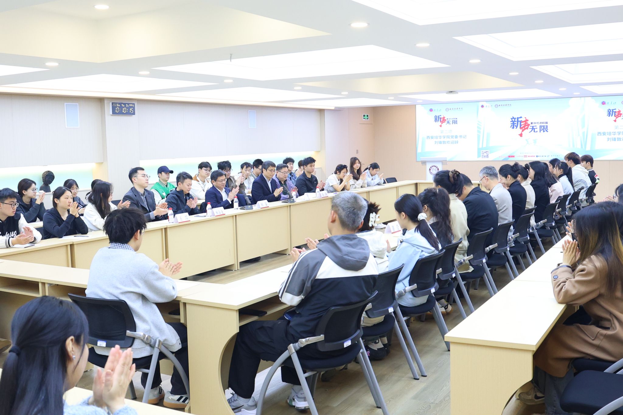 刘锋在致辞中表示,“新声无限”活动是主流媒体与高校协同育人的重要实践。他代表学校向新华社、参考消息报社各位嘉宾致以热烈欢迎和衷心感谢。他介绍,培华自1928年创办,九易其名、七迁其址,2028年将迎来百年华诞。作为扎根三秦大地的应用型民办高校,学校招生录取分数线稳居全省同类院校前列,考取公务员人数连续三年位列全省前十。当前,学校正以“强本申硕”为牵引,推进学科优化、教学提质、产教融合等五大行动。他期待以此次活动为契机,与新华社深化校媒合作,让主流声音浸润青年心灵,让百年培华的办学故事传播得更远、更响。