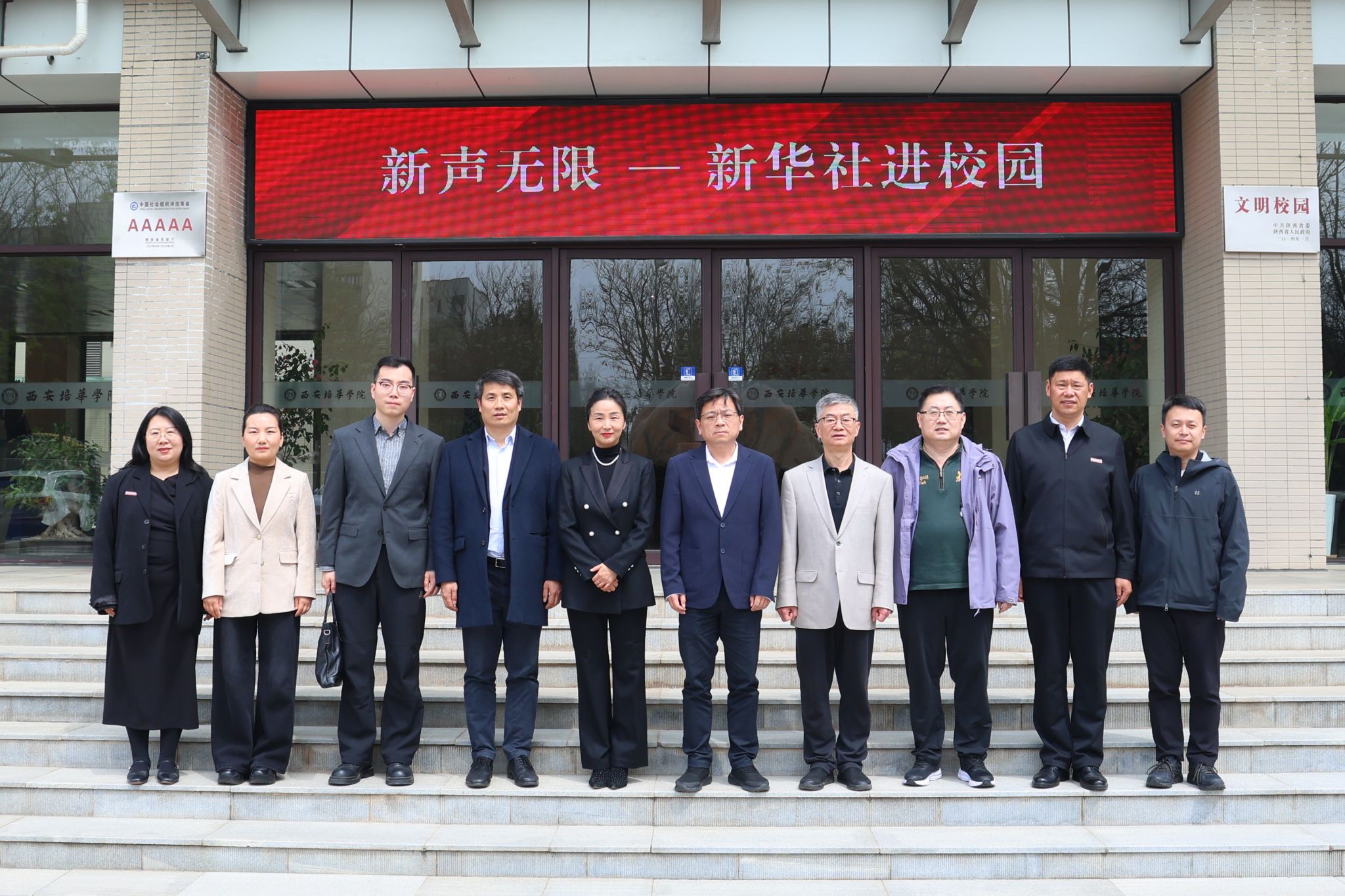 4月9日上午,“新声无限——新华社进校园”活动走进西安培华学院。参考消息报社党委常委、副总编辑何晏,参考消息报社英文编辑室副主任杜源江,参考消息报社团委书记顿海龙,新华社新闻信息中心陕西中心负责人、高级记者冯国,新华社新闻信息中心陕西中心新媒体发展部王兴,西安培华学院党委书记刘锋,宣传部、校团委相关同志及学生代表参加活动。学校党委副书记、副校长姚文静主持活动。