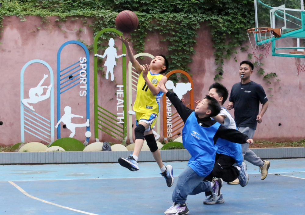 学生们在大课间参加篮球比赛。通讯员 李华时 摄