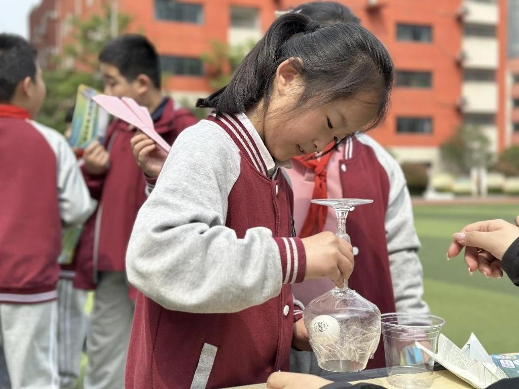 神奇的火焰掌安全又炫酷、站立的回形针奇妙又有趣、小飞机穿洞大冒险乐趣十足……日前,西安莲湖德杰实验小学化身趣味科技乐园,全校师生在德小科创周系列活动之科技游园会中自由穿梭,在各类创意体验项目中动手探索、合作体验,在趣味互动中感受科学的魅力,在实践操作中点燃创新热情。