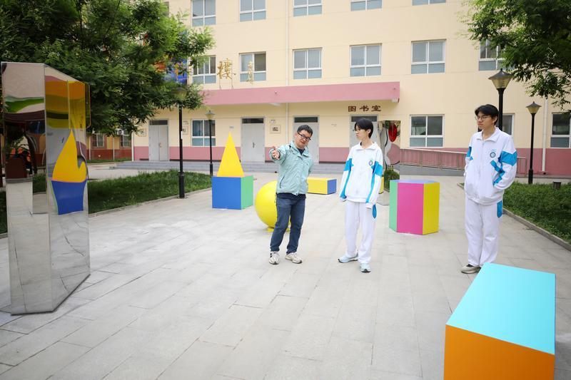 开幕式当天,学校美术馆正式开馆。场馆以“向艺术,向新生,向未来”为理念,内设画室、展览室、石刻工作坊等功能区域,打造全方位校园美育阵地。同步落成的公共装置《诗意生长》,融合几何造型与诗词文化,镂刻唐诗与学生原创诗句,学生作品可定期更新,沉淀校园艺术底蕴。